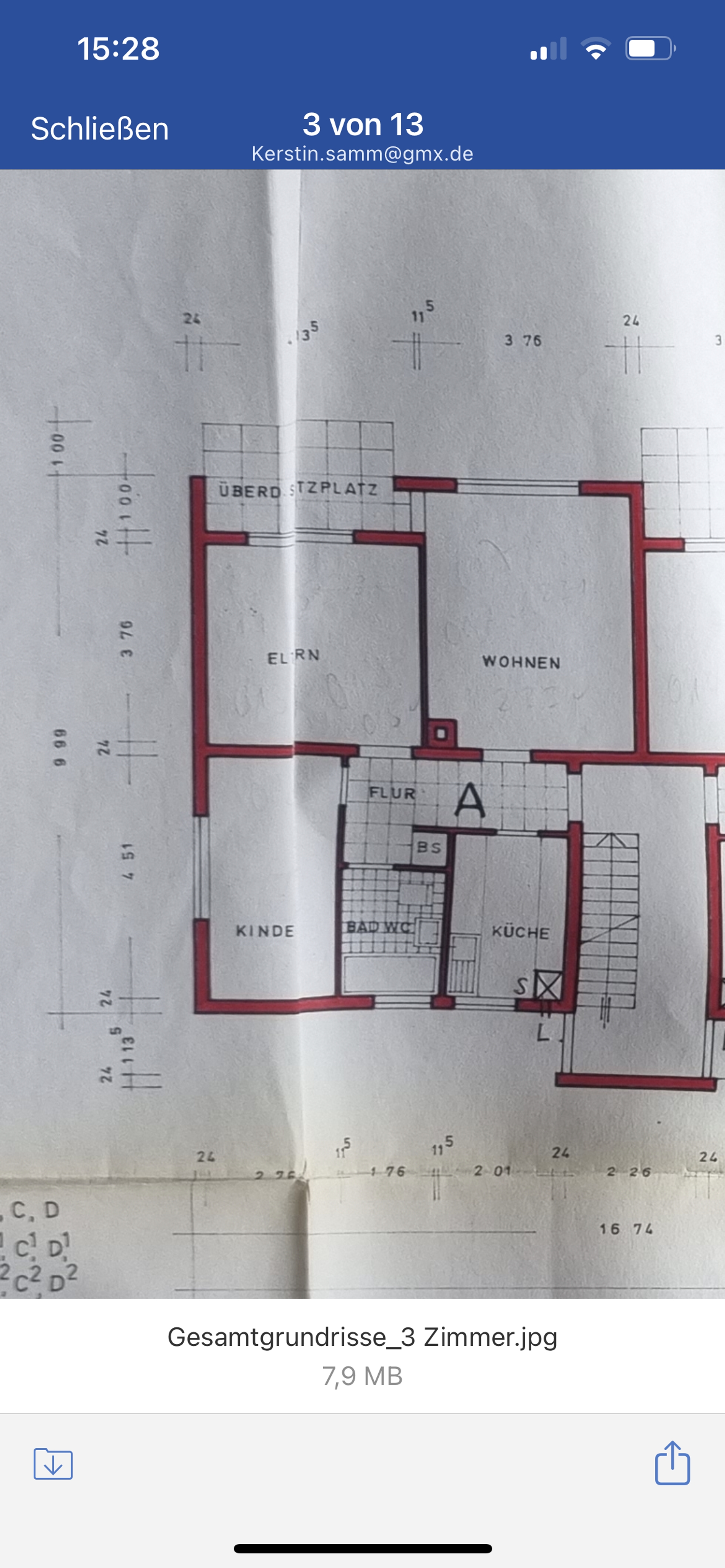Sehr helle und gut geschnittene Wohnung ebenso vermietete 3 Zimmer Wohnung in Fn